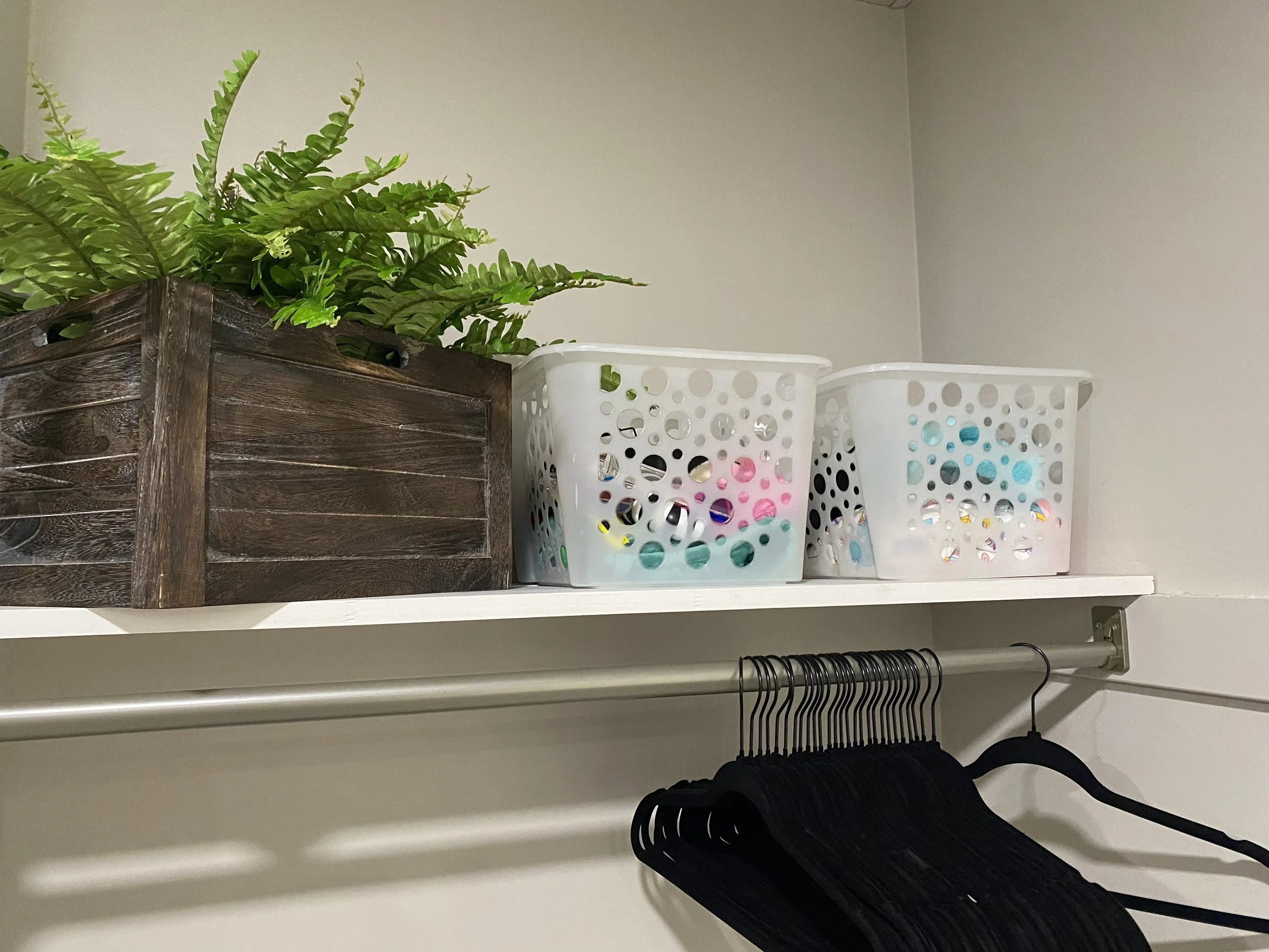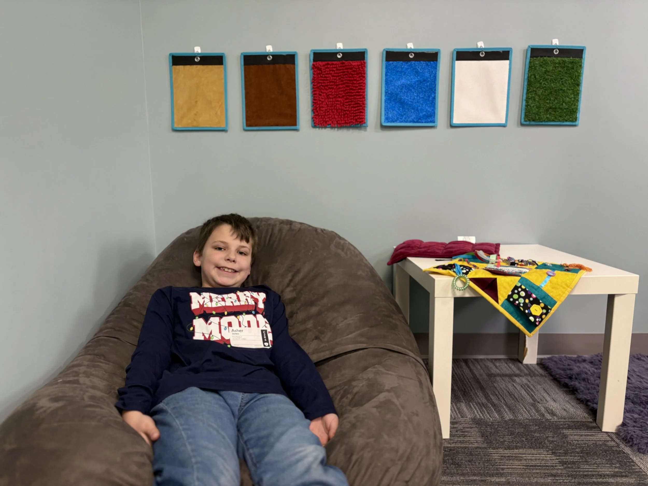 We also have Portable Sensory Bins available above the coat rack in the lobby for anyone to take and use anywhere in our space as needed. Bins contain headphones and fidgets.
