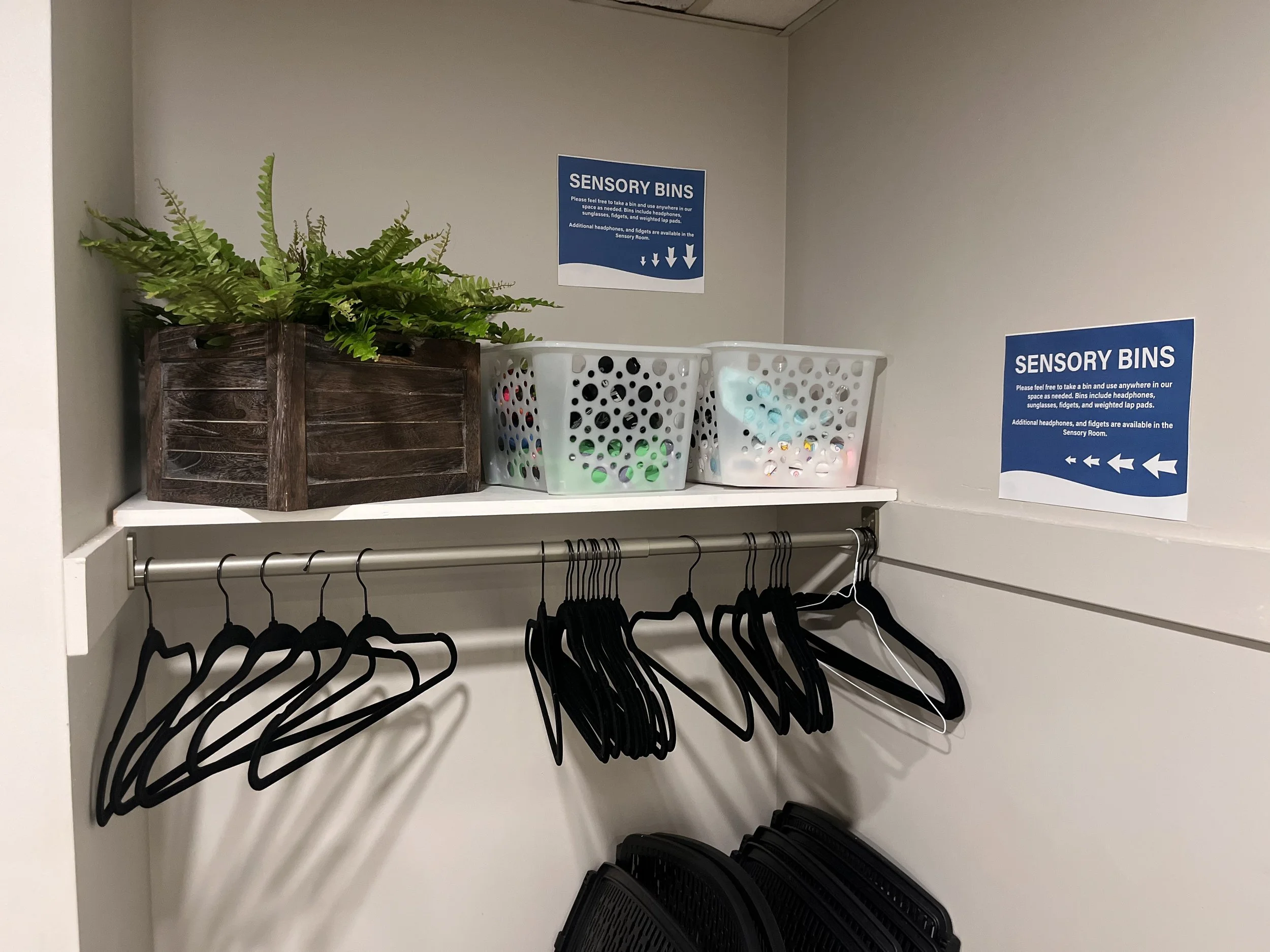 Both Sunday services are inclusive. While we offer the Sensory Room space during the service - we are also happy to have you and your family in the service as well. We offer portable sensory bins above the coat rack in the lobby that can be taken and used anywhere in our space (including services) as needed. These bins have headphones, weighted lap pads, and assorted fidgets.