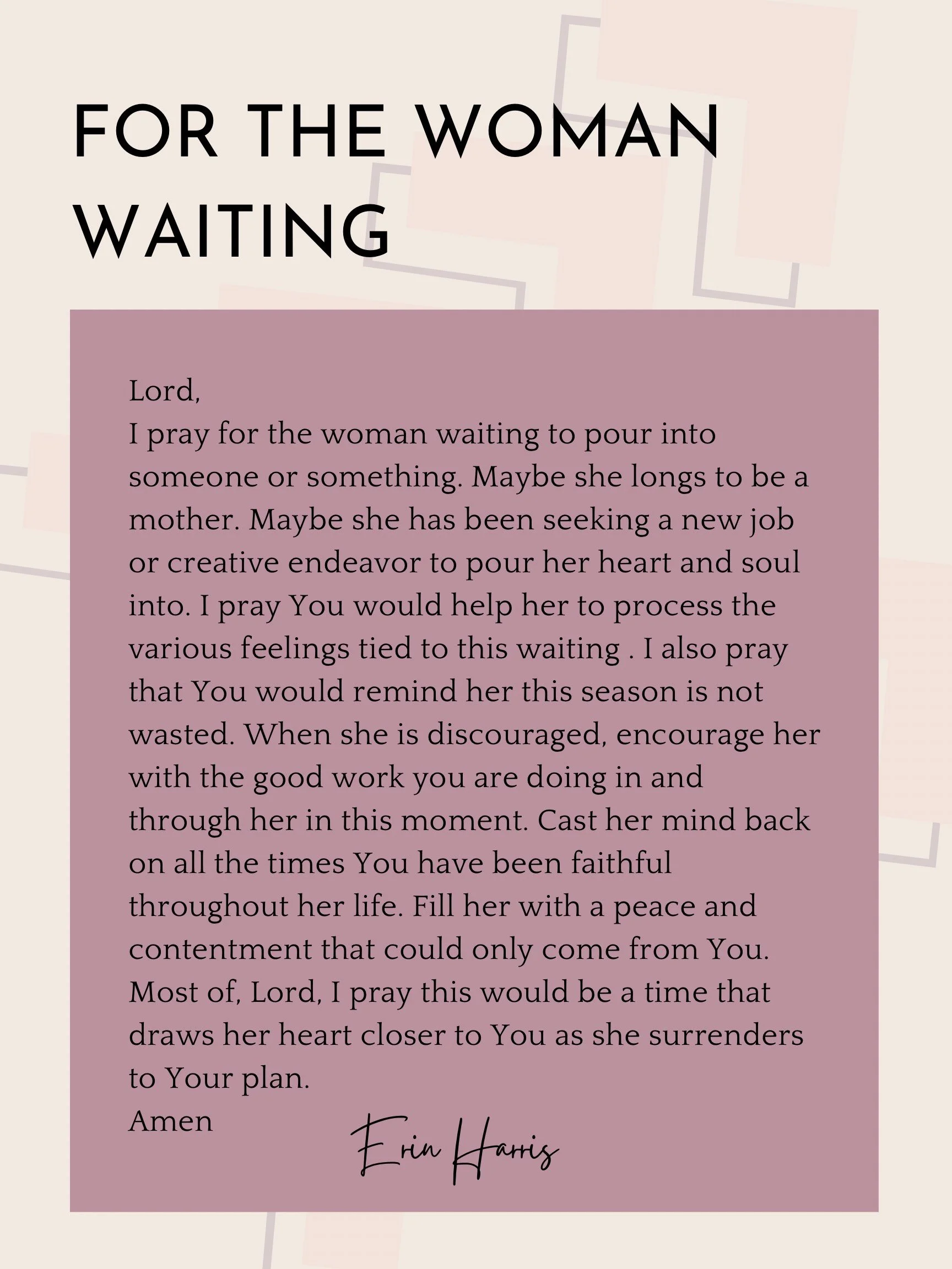 To the women that contributed prayers, thank you for your willingness to share out of your own experiences, not because you have all the answers, but because you know the One who does.