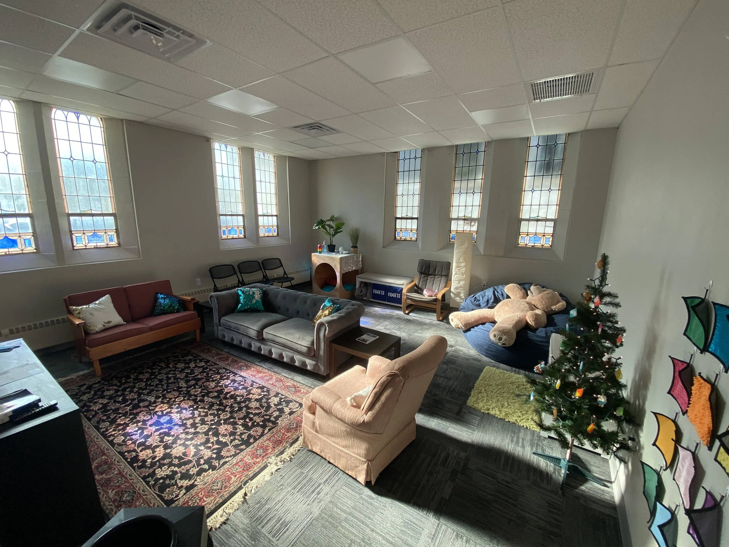 The doors to our Main Gathering space open into the Lobby area of our church. They will be open for our Christmas Eve service for overflow space - but also offers space for those who wish to participate in the Main Gathering but need space to move, pace, stim, etc.